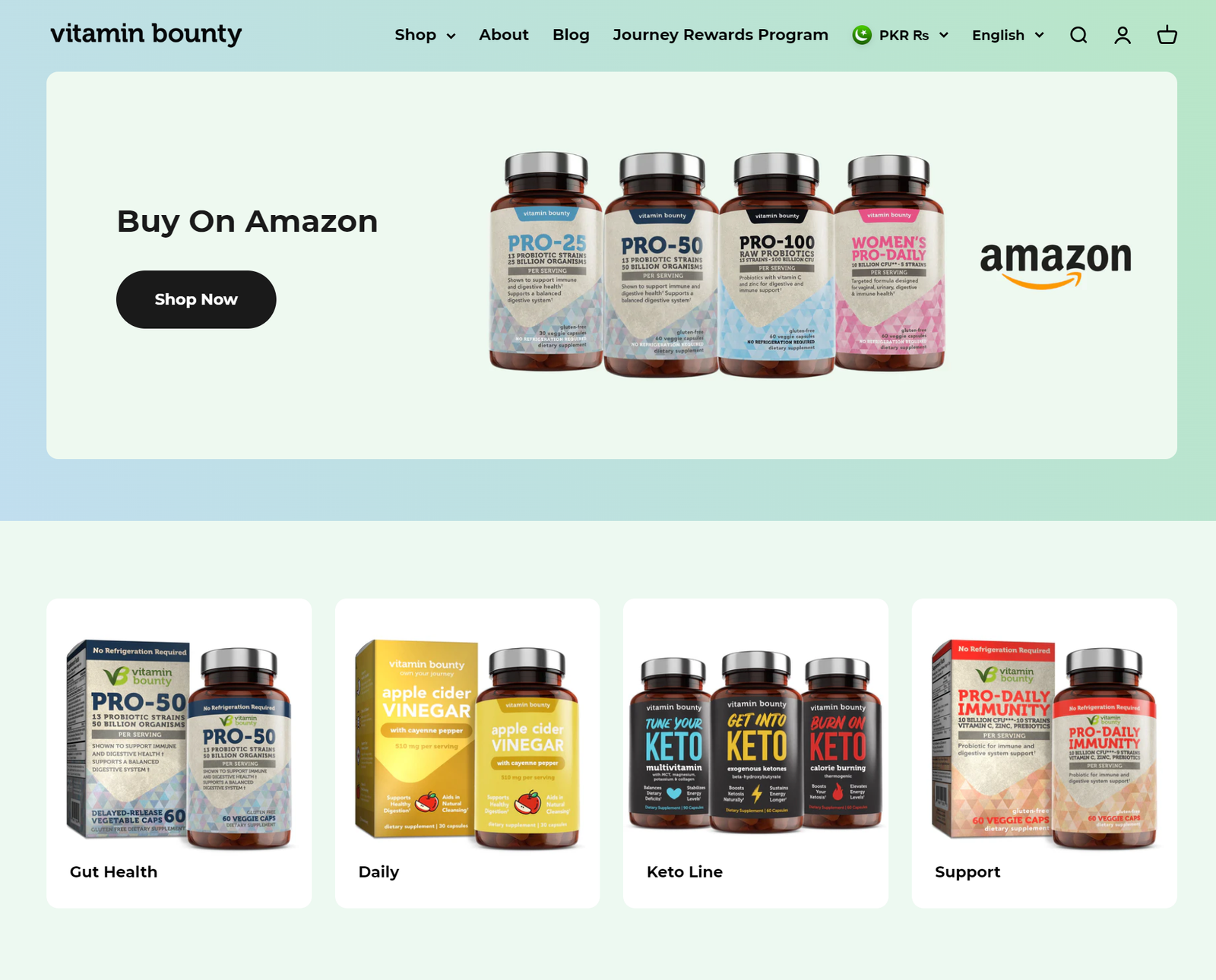 Vitamin Bounty is an e-commerce platform was created to provide customers with a seamless shopping experience for high-quality nutritional supplements and health products. The website is designed to facilitate easy browsing and purchasing, allowing users to explore a diverse range of products tailored to their health needs. Emphasizing user engagement and satisfaction, the platform features a streamlined order processing system that ensures timely delivery and transparent order tracking. The site accommodates high traffic volumes, particularly during promotional campaigns, to maintain a responsive user experience.